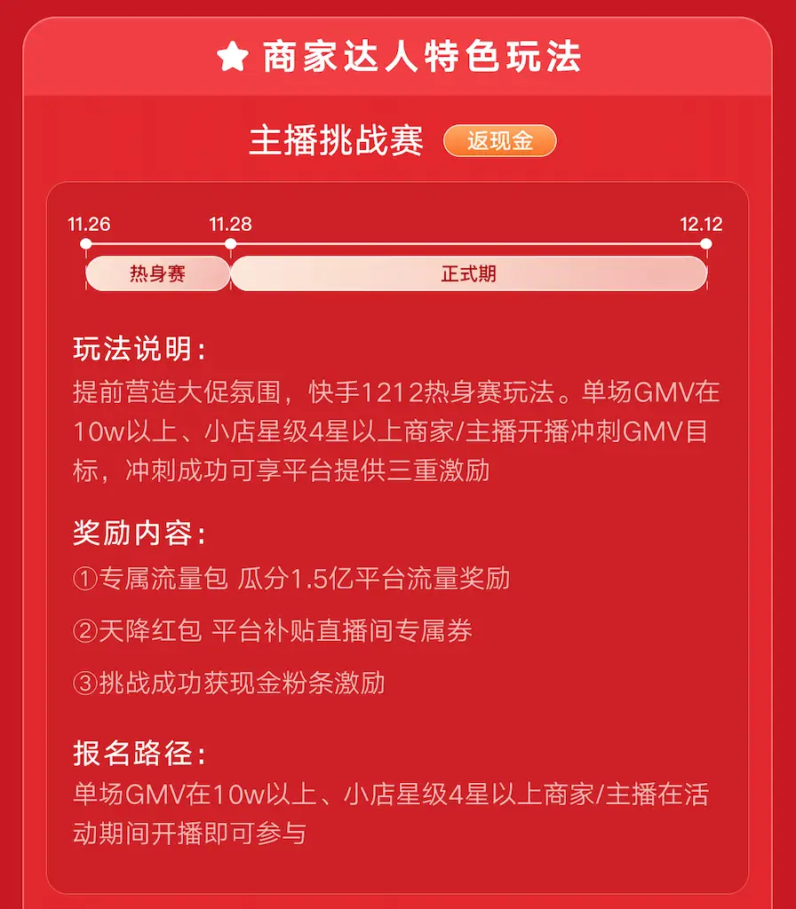 此次快手活动的参与资格有明确要求。必须发布带有#短视频带货王#话题标签,并包含小黄车的电商短视频,这表明视频内容需与商品销售紧密相连,小黄车则是商品链接的关键通道。此外,只有店铺评分在4.5分以上的用户才能参与。这一标准是对店铺质量的严格筛选,确保参与商家的信誉和商品质量。比如,那些服务不佳或商品品质不稳定的商家,店铺评分不足,便无法参与此次活动,这也促使商家努力提升店铺水平。这就像是一场严格的考试,只有符合条件者才能进入竞争。